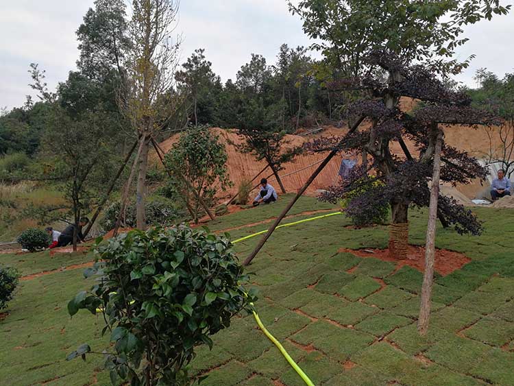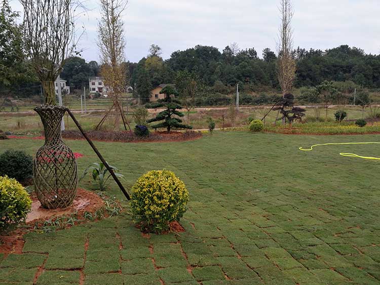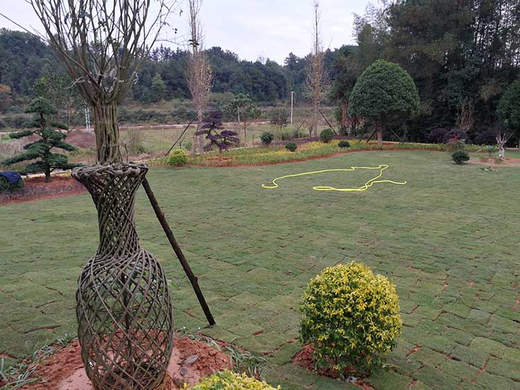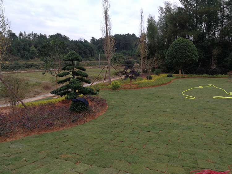 湖南華苑園林為長沙縣開慧鄉喻總的農莊設計了精致園林綠化方案,包括草坪、造型樹、喬木、灌木等多種植物。